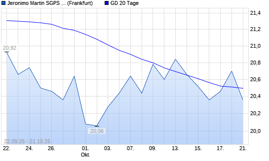 Mit dem Anstieg auf 20,70 EUR hat die Jeronimo Martins-Aktie am 20.10.2025 die 20-Tage-Linie nach oben gekreuzt.Die Jeronimo Martins-Aktie befindet sich seit dem 14.10.2025 im langfristigen ...weiterlesen