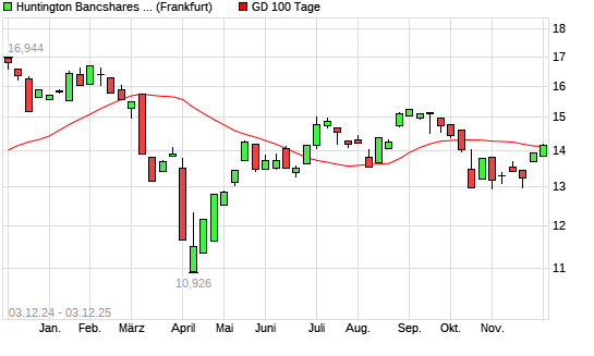 Mit dem Anstieg auf 14,19 EUR hat die Huntington Bancshares-Aktie am 02.12.2025 die 100-Tage-Linie nach oben gekreuzt.Die Huntington Bancshares-Aktie befindet sich seit dem 26.11.2025 im langfristigen ...weiterlesen