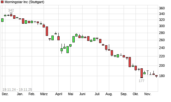 Mit dem Rücksetzer auf 174,00 EUR hat die Morningstar-Aktie (ISIN US6177001095) am 18.11.2025 ein neues 12-Monats-Tief erreicht und damit den Kurs vom 17.10.2025 eingestellt.Die Morningstar-Aktie ...weiterlesen