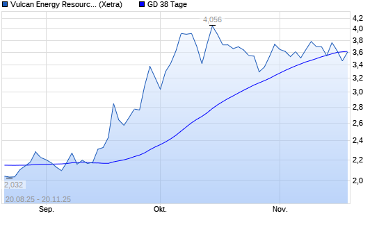Mit dem Rücksetzer auf 3,57 EUR hat die Vulcan Energy Resources-Aktie am 19.11.2025 die 38-Tage-Linie nach unten gekreuzt.Die Vulcan Energy Resources-Aktie befindet sich seit dem 18.09.2025 ...weiterlesen