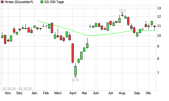 Mit dem Rücksetzer auf 10,60 EUR hat die Hirata-Aktie am 14.10.2025 die 200-Tage-Linie nach unten gekreuzt.Die Hirata-Aktie befand sich seit dem 02.10.2025 im langfristigen Aufwärtstrend ...weiterlesen