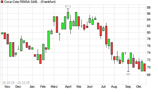 Mit dem Rücksetzer auf 68,50 EUR hat die Coca-Cola Femsa ADR-Aktie (ISIN US1912411089) am 14.10.2025 ein neues 12-Monats-Tief erreicht und damit den Kurs vom 04.09.2025 eingestellt.Die ...weiterlesen