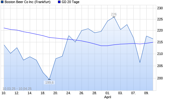 Mit dem Rücksetzer auf 200,20 EUR hat die Boston Beer-Aktie am 09.04.2025 die 20-Tage-Linie nach unten gekreuzt.Die Boston Beer-Aktie befindet sich seit dem 09.01.2025 im langfristigen ...weiterlesen