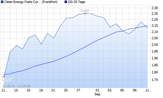 Mit dem Anstieg auf 2,18 EUR hat die Clean Energy Fuels Corp-Aktie am 10.09.2025 die 20-Tage-Linie nach oben gekreuzt.Die Clean Energy Fuels Corp-Aktie befindet sich seit dem 20.08.2025 im langfristigen ...weiterlesen