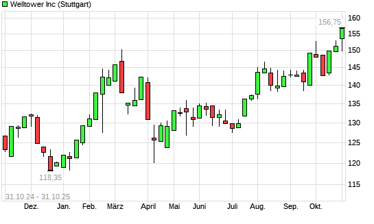 Mit dem Anstieg auf 155,85 EUR hat die Welltower-Aktie (ISIN US95040Q1040) am 30.10.2025 ein neues All-Time-High erreicht und damit den Kurs vom 29.10.2025 eingestellt.Die Welltower-Aktie befindet ...weiterlesen