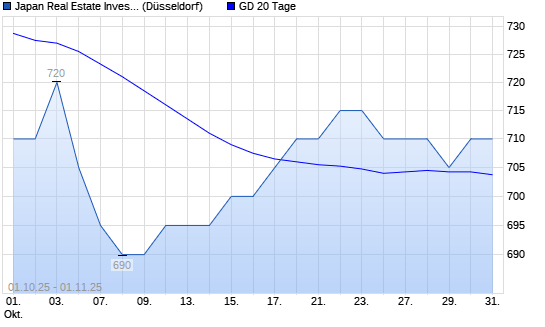 Mit dem Anstieg auf 715,00 EUR hat die Japan Real Estate Investment-Aktie am 31.10.2025 die 20-Tage-Linie nach oben gekreuzt.Die Japan Real Estate Investment-Aktie befindet sich seit dem 09.04.2025 ...weiterlesen
