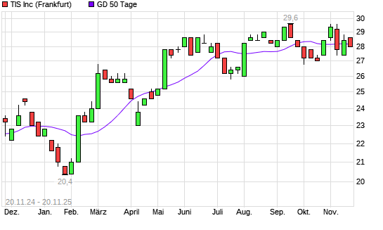Mit dem Rücksetzer auf 28,00 EUR hat die IT Holdings-Aktie am 19.11.2025 die 50-Tage-Linie nach unten gekreuzt.Die IT Holdings-Aktie befindet sich seit dem 28.01.2025 im langfristigen Aufwärtstrend ...weiterlesen