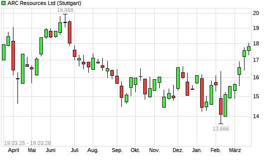 Mit dem Anstieg auf 17,81 EUR hat die ARC Resources-Aktie (ISIN CA00208D4084) am 18.03.2026 ein neues 6-Monats-Hoch erreicht und damit den Kurs vom 13.03.2026 eingestellt.Die ...weiterlesen