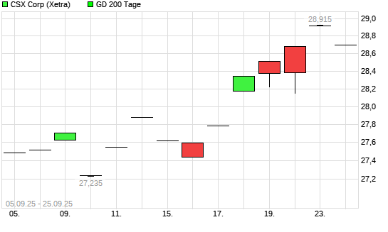 Mit dem Anstieg auf 28,75 EUR hat die CSX-Aktie am 24.09.2025 die 200-Tage-Linie nach oben gekreuzt.Die CSX-Aktie befand sich seit dem 25.08.2025 im langfristigen Aufwärtstrend und hat in diesem ...weiterlesen