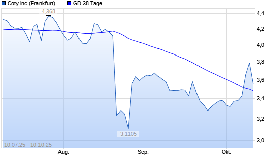 Mit dem Anstieg auf 3,68 EUR hat die Coty-Aktie am 09.10.2025 die 38-Tage-Linie nach oben gekreuzt.Die Coty-Aktie befindet sich seit dem 08.05.2024 im langfristigen Abwärtstrend und hat in diesem ...weiterlesen