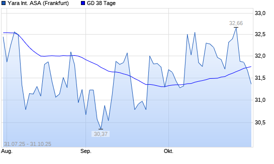 Mit dem Rücksetzer auf 31,67 EUR hat die Yara International-Aktie am 30.10.2025 die 38-Tage-Linie nach unten gekreuzt.Die Yara International-Aktie befindet sich seit dem 23.04.2025 im langfristigen ...weiterlesen