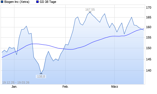 Mit dem Rücksetzer auf 156,05 EUR hat die Biogen-Aktie am 18.03.2026 die 38-Tage-Linie nach unten gekreuzt.Die Biogen-Aktie befindet sich seit dem 01.10.2025 im ...weiterlesen