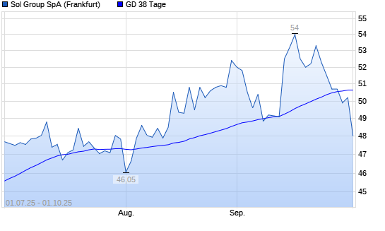 Mit dem Rücksetzer auf 48,60 EUR hat die Sol S.P.A.-Aktie am 30.09.2025 die 38-Tage-Linie nach unten gekreuzt.Die Sol S.P.A.-Aktie befindet sich seit dem 17.04.2025 im langfristigen Aufwärtstrend ...weiterlesen