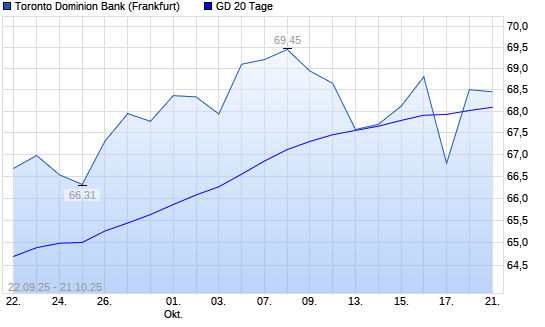 Mit dem Anstieg auf 68,50 EUR hat die Toronto-Dominion Bank-Aktie am 20.10.2025 die 20-Tage-Linie nach oben gekreuzt.Die Toronto-Dominion Bank-Aktie befindet sich seit dem 23.04.2025 im langfristigen ...weiterlesen