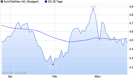 Mit dem Rücksetzer auf 4,47 EUR hat die EuroTeleSites AG-Aktie am 20.03.2026 die 38-Tage-Linie nach unten gekreuzt.Die EuroTeleSites AG-Aktie befindet sich seit dem 02.03.2026 ...weiterlesen