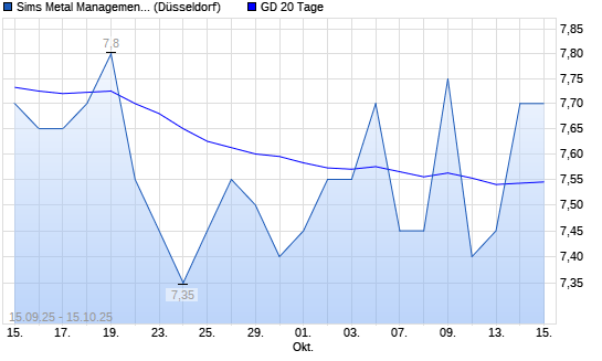 Mit dem Anstieg auf 7,60 EUR hat die Sims Metal Management-Aktie am 14.10.2025 die 20-Tage-Linie nach oben gekreuzt.Die Sims Metal Management-Aktie befindet sich seit dem 19.08.2025 im langfristigen ...weiterlesen