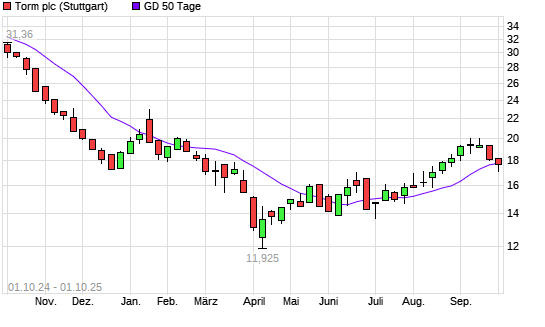 Mit dem Rücksetzer auf 17,60 EUR hat die TORM-Aktie am 30.09.2025 die 50-Tage-Linie nach unten gekreuzt.Die TORM-Aktie befindet sich seit dem 18.08.2025 im langfristigen Aufwärtstrend und ...weiterlesen