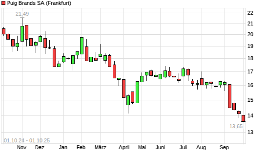 Mit dem Rücksetzer auf 13,65 EUR hat die Puig Brands-Aktie (ISIN ES0105777017) am 30.09.2025 ein neues All-Time-Low erreicht und damit den Kurs vom 25.09.2025 eingestellt.Der Abstand ...weiterlesen