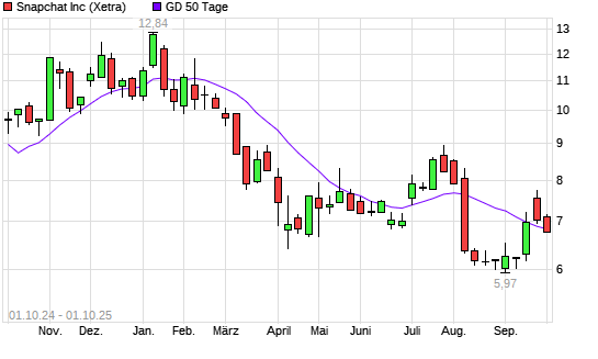 Mit dem Rücksetzer auf 6,74 EUR hat die Snap-Aktie am 30.09.2025 die 50-Tage-Linie nach unten gekreuzt.Die Snap-Aktie befindet sich seit dem 16.01.2025 im langfristigen Abwärtstrend und ...weiterlesen
