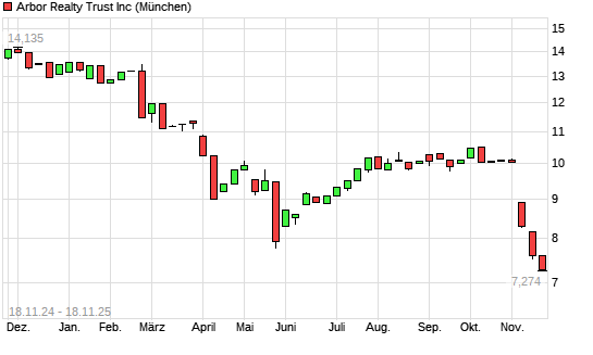 Mit dem Rücksetzer auf 7,10 EUR hat die Arbor Realty Trust-Aktie (ISIN US0389231087) am 17.11.2025 ein neues 5-Jahres-Tief erreicht und damit den Kurs vom 14.11.2025 eingestellt.Die Arbor ...weiterlesen