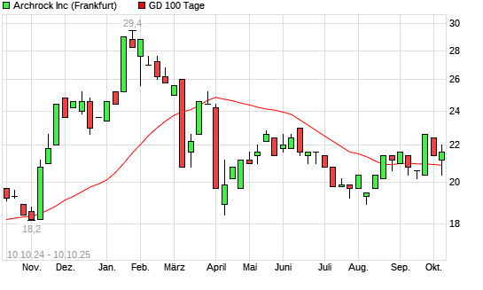 Mit dem Anstieg auf 21,60 EUR hat die Archrock-Aktie am 09.10.2025 die 100-Tage-Linie nach oben gekreuzt.Die Archrock-Aktie befindet sich seit dem 29.09.2025 im langfristigen Abwärtstrend und ...weiterlesen