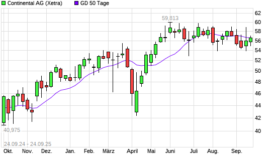 Mit dem Anstieg auf 56,92 EUR hat die Continental-Aktie am 23.09.2025 die 50-Tage-Linie nach oben gekreuzt.Die Continental-Aktie befindet sich seit dem 18.09.2025 im langfristigen Aufwärtstrend ...weiterlesen
