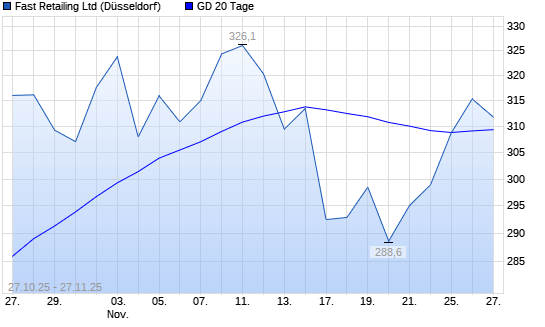 Mit dem Anstieg auf 313,70 EUR hat die Fast Retailing-Aktie am 26.11.2025 die 20-Tage-Linie nach oben gekreuzt.Die Fast Retailing-Aktie befindet sich seit dem 10.10.2025 im langfristigen Aufwärtstrend ...weiterlesen