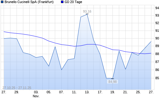 Mit dem Anstieg auf 88,72 EUR hat die Brunello Cucinelli-Aktie am 26.11.2025 die 20-Tage-Linie nach oben gekreuzt.Die Brunello Cucinelli-Aktie befindet sich seit dem 21.07.2025 im langfristigen ...weiterlesen