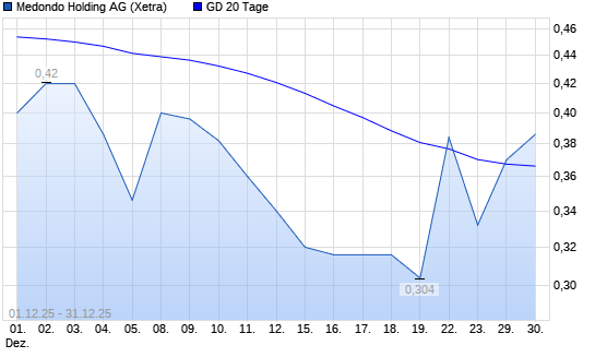 Mit dem Anstieg auf 0,35 EUR hat die medondo holding AG-Aktie am 30.12.2025 die 20-Tage-Linie nach oben gekreuzt.Die medondo holding AG-Aktie befindet sich seit dem 27.11.2025 im langfristigen ...weiterlesen