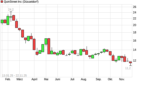 Mit dem Rücksetzer auf 11,20 EUR hat die QuinStreet-Aktie (ISIN US74874Q1004) am 21.11.2025 ein neues 12-Monats-Tief erreicht und damit den Kurs vom 18.11.2025 eingestellt.Die QuinStreet-Aktie ...weiterlesen