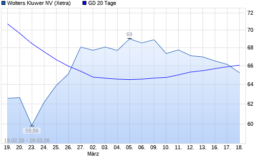 Mit dem Rücksetzer auf 64,88 EUR hat die Wolters Kluwer-Aktie am 18.03.2026 die 20-Tage-Linie nach unten gekreuzt.Die Wolters Kluwer-Aktie befindet sich seit dem 30.05.2025 ...weiterlesen