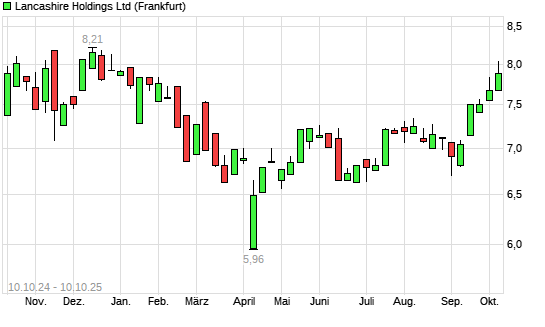 Mit dem Anstieg auf 8,00 EUR hat die Lancashire Holdings-Aktie (ISIN BMG5361W1047) am 09.10.2025 ein neues 6-Monats-Hoch erreicht und damit den Kurs vom 08.10.2025 eingestellt.Die Lancashire ...weiterlesen