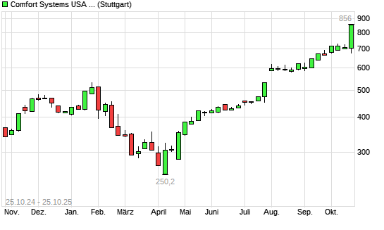 Mit dem Anstieg auf 849,50 EUR hat die Comfort Systems-Aktie (ISIN US1999081045) am 24.10.2025 ein neues All-Time-High erreicht und damit den Kurs vom 13.10.2025 eingestellt.Die Comfort Systems-Aktie ...weiterlesen