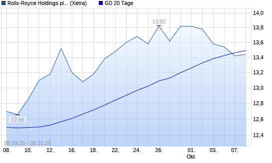 Mit dem Rücksetzer auf 13,30 EUR hat die Rolls-Royce-Aktie am 07.10.2025 die 20-Tage-Linie nach unten gekreuzt.Die Rolls-Royce-Aktie befindet sich seit dem 21.12.2022 im langfristigen Aufwärtstrend ...weiterlesen