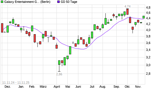 Mit dem Anstieg auf 4,40 EUR hat die Galaxy Entertainment-Aktie am 10.11.2025 die 50-Tage-Linie nach oben gekreuzt.Die Galaxy Entertainment-Aktie befindet sich seit dem 02.07.2025 im langfristigen ...weiterlesen
