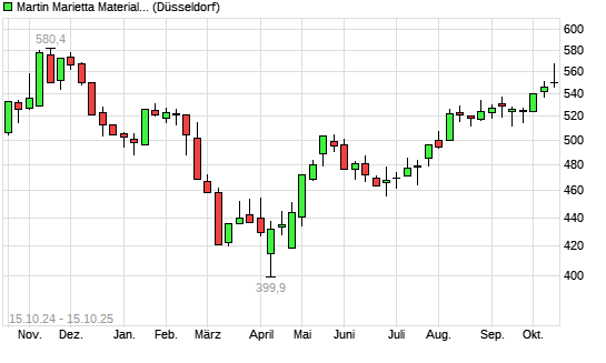 Mit dem Anstieg auf 548,60 EUR hat die Martin Marietta Materials-Aktie (ISIN US5732841060) am 14.10.2025 ein neues 6-Monats-Hoch erreicht und damit den Kurs vom 13.10.2025 eingestellt.Die Martin ...weiterlesen
