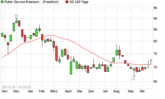 Mit dem Rücksetzer auf 71,00 EUR hat die Public Service Enterprise Group-Aktie am 22.10.2025 die 100-Tage-Linie nach unten gekreuzt.Die Public Service Enterprise Group-Aktie befindet sich ...weiterlesen