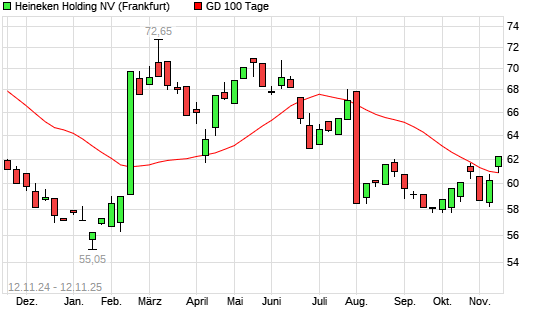 Mit dem Anstieg auf 61,00 EUR hat die Heineken Holding-Aktie am 11.11.2025 die 100-Tage-Linie nach oben gekreuzt.Die Heineken Holding-Aktie befindet sich seit dem 29.07.2025 im langfristigen ...weiterlesen