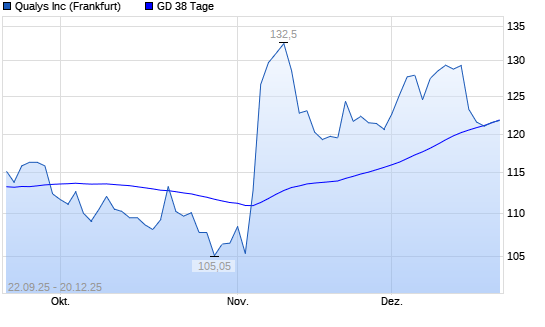 Mit dem Rücksetzer auf 121,80 EUR hat die Qualys-Aktie am 19.12.2025 die 38-Tage-Linie nach unten gekreuzt.Die Qualys-Aktie befindet sich seit dem 06.11.2025 im langfristigen Aufwärtstrend ...weiterlesen