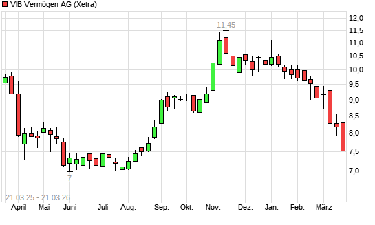 Mit dem Rücksetzer auf 7,52 EUR hat die VIB Vermogen AG-Aktie (ISIN DE000A2YPDD0) am 20.03.2026 ein neues 6-Monats-Tief erreicht und damit den Kurs vom 19.03.2026 eingestellt.Die ...weiterlesen