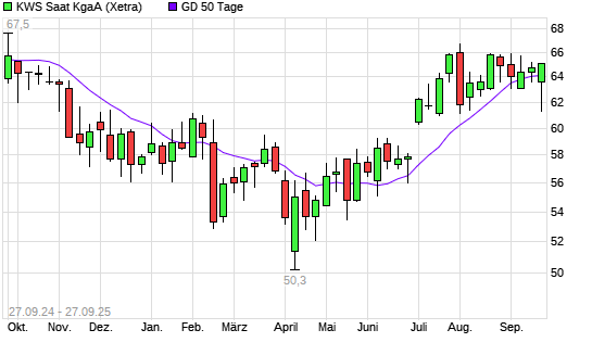 Mit dem Anstieg auf 64,40 EUR hat die KWS Saat-Aktie am 26.09.2025 die 50-Tage-Linie nach oben gekreuzt.Die KWS Saat-Aktie befindet sich seit dem 30.06.2025 im langfristigen Aufwärtstrend und ...weiterlesen