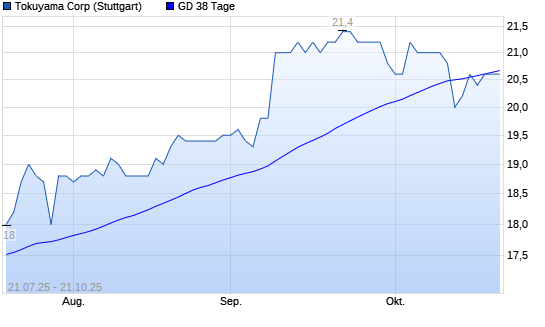 Mit dem Anstieg auf 20,80 EUR hat die Tokuyama-Aktie am 20.10.2025 die 38-Tage-Linie nach oben gekreuzt.Die Tokuyama-Aktie befindet sich seit dem 21.05.2025 im langfristigen Aufwärtstrend und ...weiterlesen
