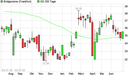 Mit dem Anstieg auf 35,07 EUR hat die Bridgestone-Aktie am 02.07.2025 die 200-Tage-Linie nach oben gekreuzt.Die Bridgestone-Aktie befand sich seit dem 27.06.2025 im langfristigen Abwärtstrend ...weiterlesen