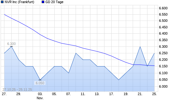 Mit dem Rücksetzer auf 6.150,00 EUR hat die NVR-Aktie am 24.11.2025 die 20-Tage-Linie nach unten gekreuzt.Die NVR-Aktie befindet sich seit dem 07.10.2025 im langfristigen Abwärtstrend und ...weiterlesen