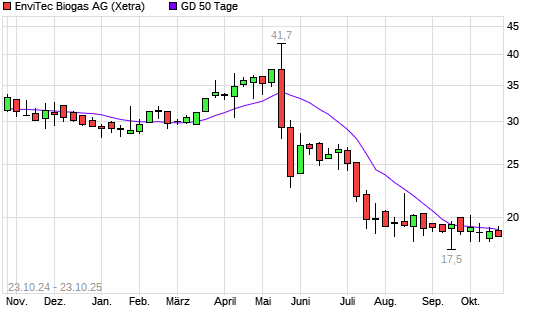 Mit dem Rücksetzer auf 18,45 EUR hat die Envitec Biogas-Aktie am 22.10.2025 die 50-Tage-Linie nach unten gekreuzt.Die Envitec Biogas-Aktie befindet sich seit dem 16.05.2025 im langfristigen ...weiterlesen