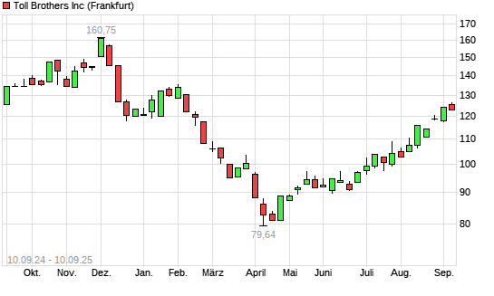 Mit dem Anstieg auf 124,95 EUR hat die Toll Brothers-Aktie (ISIN US8894781033) am 09.09.2025 ein neues 6-Monats-Hoch erreicht und damit den Kurs vom 08.09.2025 eingestellt.Die Toll Brothers-Aktie ...weiterlesen