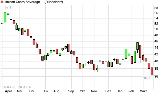 Mit dem Rücksetzer auf 36,23 EUR hat die Molson Coors Brewing-Aktie (ISIN US60871R2094) am 19.03.2026 ein neues 5-Jahres-Tief erreicht und damit den Kurs vom ...weiterlesen