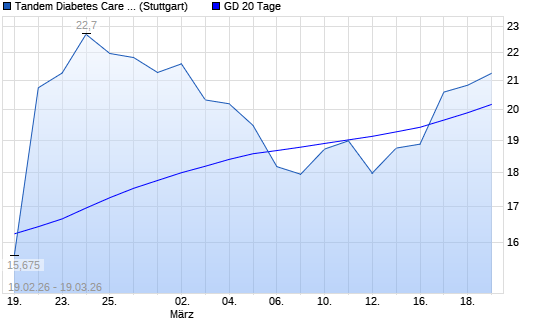 Mit dem Anstieg auf 20,66 EUR hat die Tandem Diabetes Care-Aktie am 18.03.2026 die 20-Tage-Linie nach oben gekreuzt.Die Tandem Diabetes Care-Aktie befindet sich seit dem 17.11.2025 ...weiterlesen
