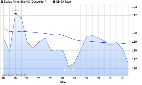 Mit dem Rücksetzer auf 118,40 EUR hat die Swiss Prime Site-Aktie am 15.09.2025 die 20-Tage-Linie nach unten gekreuzt.Die Swiss Prime Site-Aktie befindet sich seit dem 04.09.2025 im langfristigen ...weiterlesen
