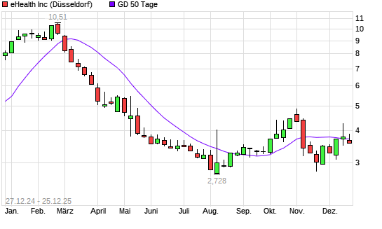 Mit dem Anstieg auf 3,70 EUR hat die eHealth-Aktie am 24.12.2025 die 50-Tage-Linie nach oben gekreuzt.Die eHealth-Aktie befindet sich seit dem 22.12.2025 im langfristigen Abwärtstrend und hat ...weiterlesen